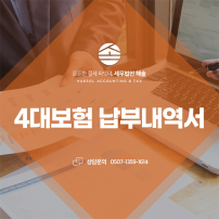 오늘 저희 세무법인 해솔에서는 개인 별로 4대 보험 납부내역서를발급 받는 방법에 대해 공유해 드리려고 합니다.우선 4대 보험으로 분류되는 보험 종류로는국민연금, 건강보험, 고용보험, 산재보험이 있습니다.네 가지 보험은 모두 국민의 건강과 최소한의 생계를 유지할 수 있도록만들어진 제도라고 할 수 있습니다.4대 보험 납부내역서 확인서는 이렇게 네 가지로 분류된 각 보험에 대한가입 내역과 가입자의 명부를 확인 가능한 서류입니다.보험 종류마다 다른 기관에서 관리를 하고 있는데,국민연금의 경우 국민연금공단에서, 건강보험은 국민건강보험공단에서마지막으로 고용보험과 산재보험은 근로복지공단에서 관리하고 있습니다.일반적으로 관리하는 기관이 다르기 때문에 확인서를 발급 받아야 하는보험 종류마다 다른 기관에서 발급을 요청해야 한다고 생각할 수 있지만한 번에 같은 사이트에서 요청할 수 있습니다.4대 보험 납부내역서는 간편하게 4대 보험 정보 연계 센터 사이트에서일괄로 발급 받을 수 있습니다.우선 사이트에 접속하여 공인 인증서를 통해서 로그인을 하게 됩니다.로그인을 하고 나면 상단 탭에 증명서를 신청하고,발급 받을 수 있는 버튼을 확인할 수 있습니다.이러한 경로로 들어가서 가입 내역 확인서 청구 내역에 있는서류 종류 중 원하는 서류를 클릭하여 신청하시면 됩니다.이후 한 번 새로고침 버튼을 누르고 나면 4대 보험 납부내역서 종류 네 가지 모두를출력할 수 있는 상태임을 확인할 수 있습니다.그렇게 되면 아래쪽에 있는 출력 버튼을 눌러 증명서 발급을 완료할 수 있습니다.저희 세무법인 해솔에서는 기장 업무, 신고대리, 재무제표와 여러 가지 종류의국세와 지방세에 대한 신고 및 신청 등의 업무를 도와드리고 있습니다.업종별 전문 세무사와 변리사, 변호사, 노무사 등의 분야별 전문가와협업을 진행할 수 있으므로 전반적인 세무와 재무 업무에 도움을 받을 수 있습니다.모든 업무 과정은 실시간으로 카카오톡이나 전화 소통이 가능하여빠르게 원하는 부분이 있거나 궁금한 부분이 있는 경우를 해소할 수 있습니다.4대 보험 납부내역서 외에 세무대리에도 추가적으로 궁금한 부분이 있으시다면간단하게 카카오톡으로 문의해 주시기를 바랍니다.